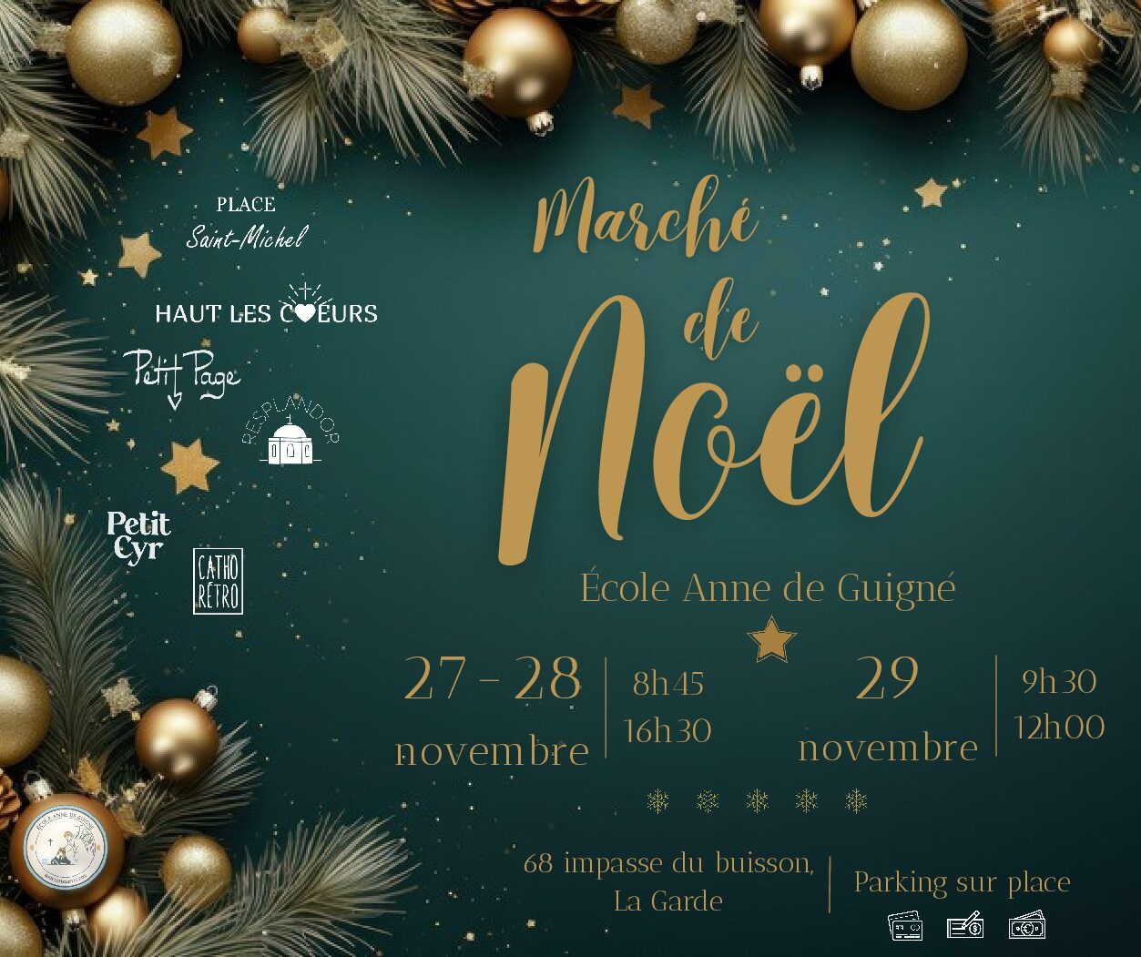 Le Marché de Noël de l’école Anne de Guigné se tiendra les 27, 28 et 29 novembre, 68 impasse du buisson à La Garde !
